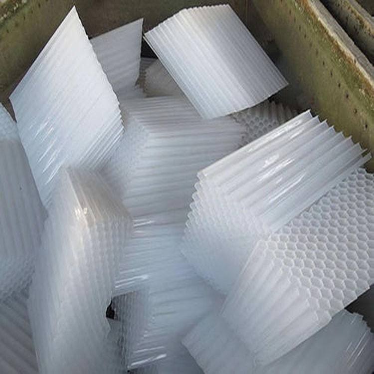 蜂窩斜管,斜板截面為密集幾何形:根據(jù)淺池原理,在沉淀池有效容積一定的情況下。沉淀池面積越大,效率越高,且與沉淀時(shí)間無(wú)關(guān);沉淀池越淺,沉淀時(shí)間越短;斜管填料沉淀池的沉淀區(qū)是由一系列平行斜板或傾斜管子將水流隔開(kāi)而形成的薄層淺池。